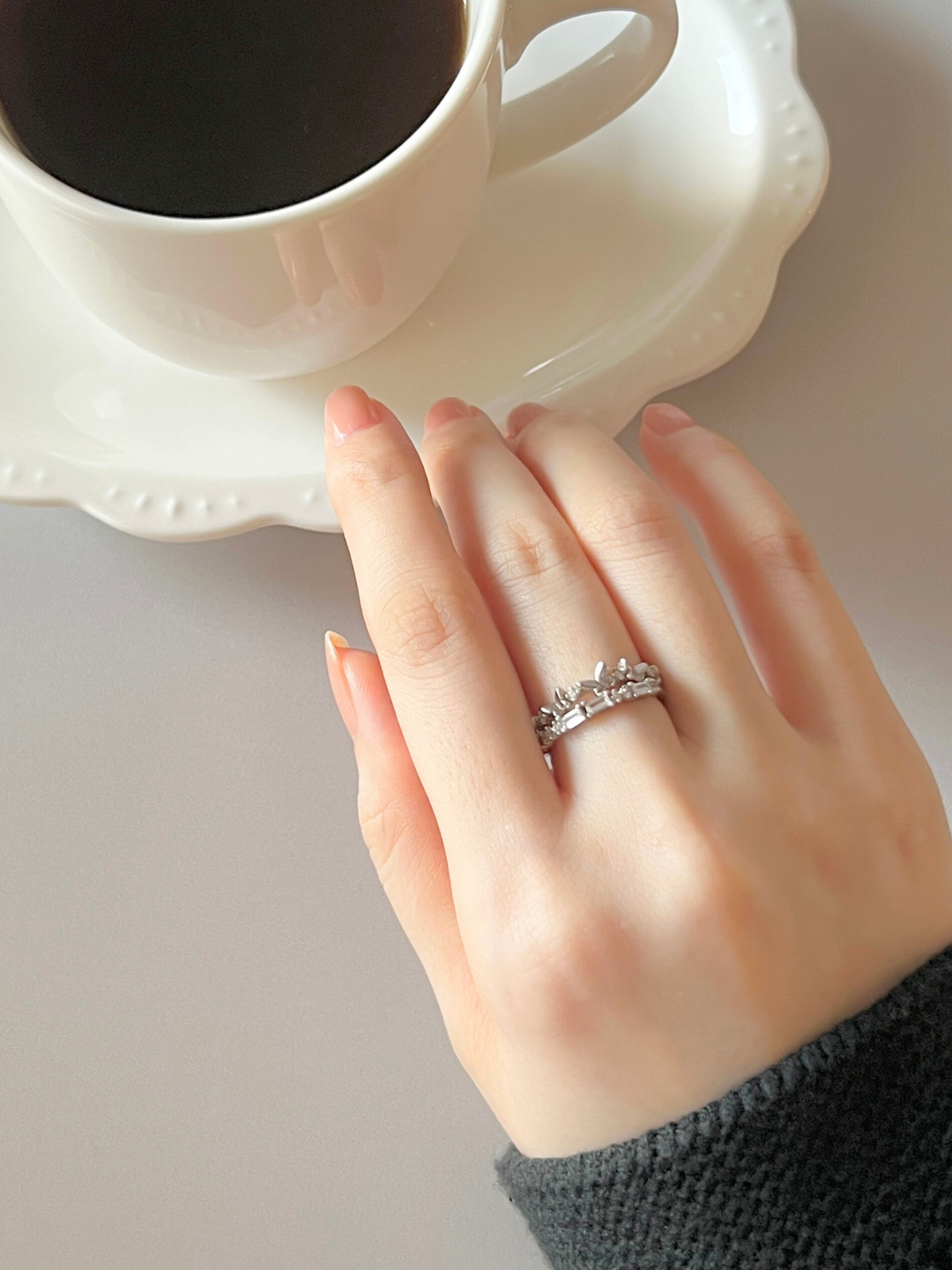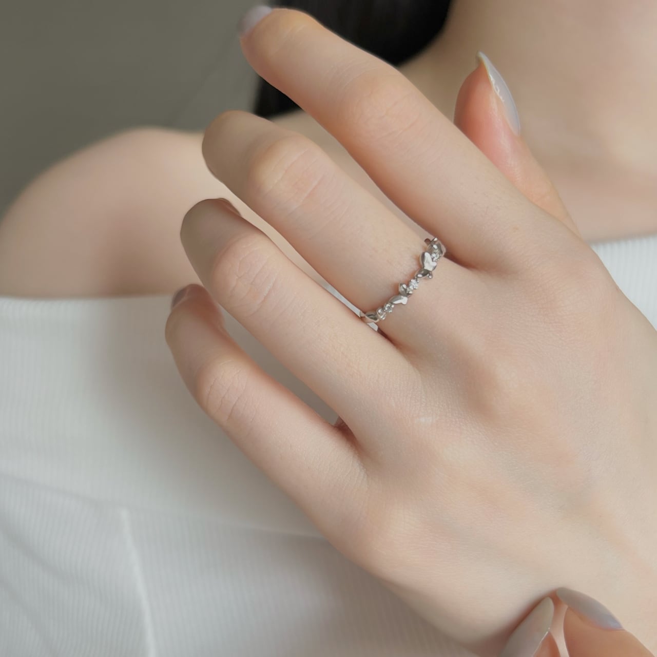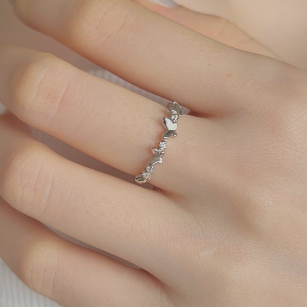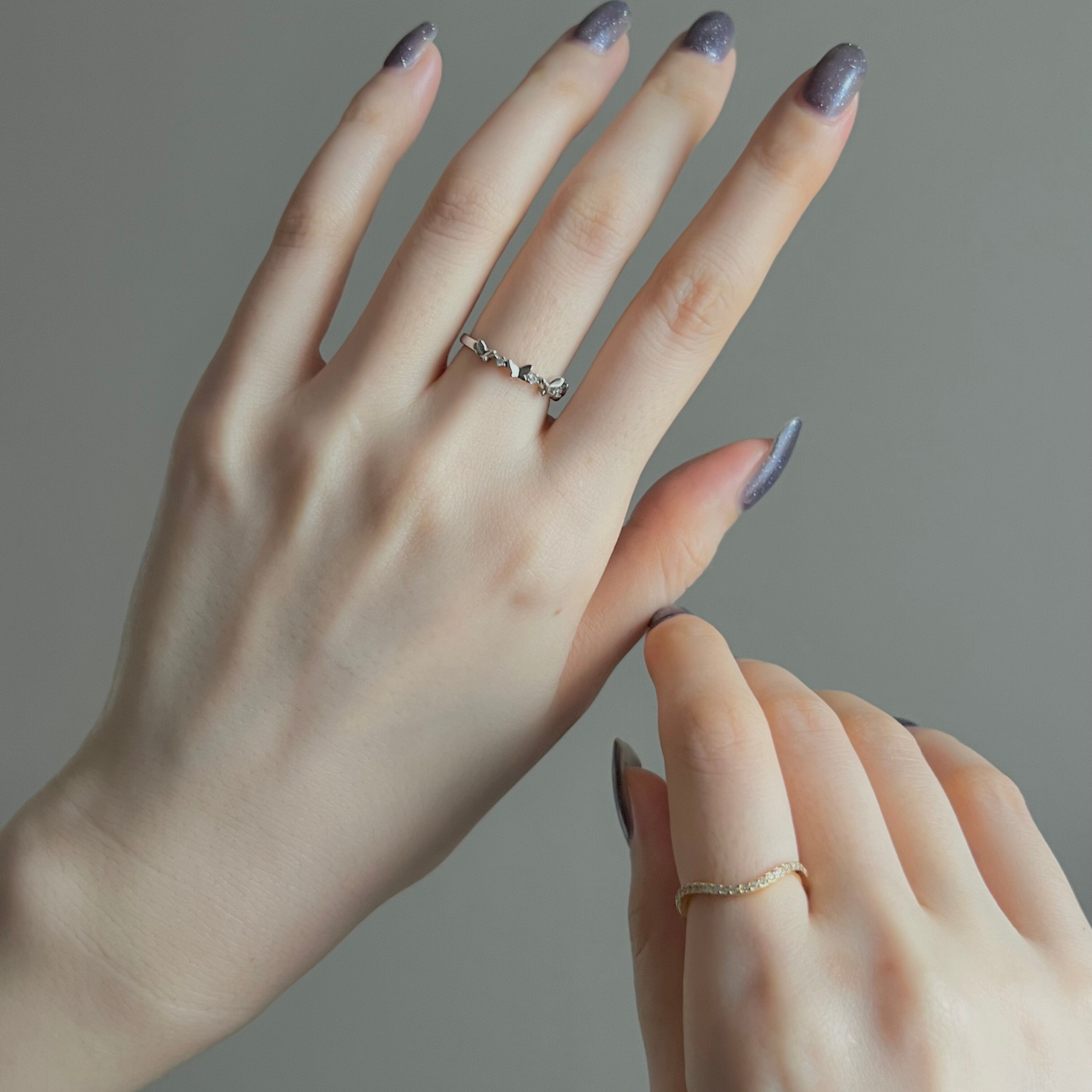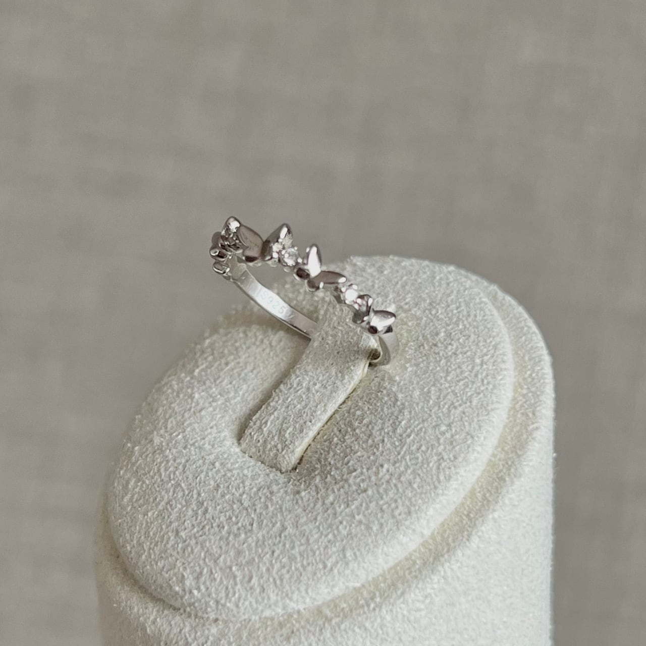 ジルコニアの潤んだような煌めきもとても美しいリングになっています。