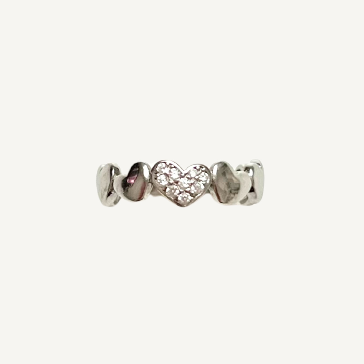 ぷっくりとした6つのハート、ジルコニアが輝く1つのハート